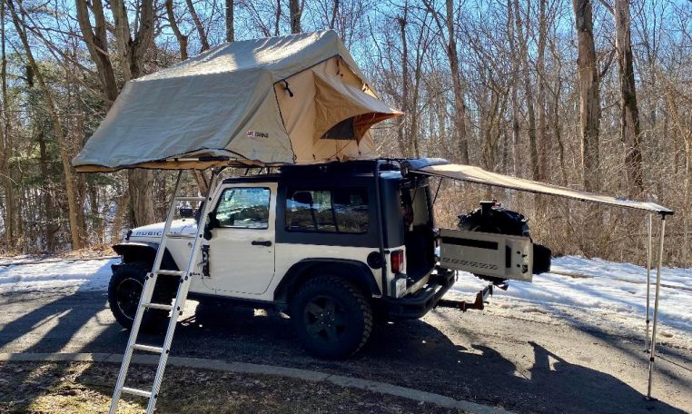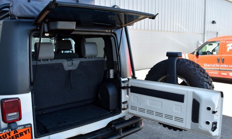 — ARB Simpson Rooftop Tent w/ Roof Rack Mount & Ladder – ARB Rear Canopy Tent – 32-Inch BFGoodrich Mud-Terrain T/A KM2 Tires – Door Hinge Steps – Hood-Mounted Hi-Lift Jack – Aftermarket Front Bumper w/ Stinger – Aftermarket Rear Bumper w/ Towing Receiver – High-Profile Fender Flares – Vector Off-Road JKE-Dock Dash Rack – RAM Mounts Phone Mount – A-Pillar Grab Handles – AND MORE!