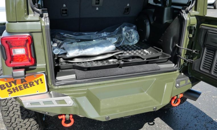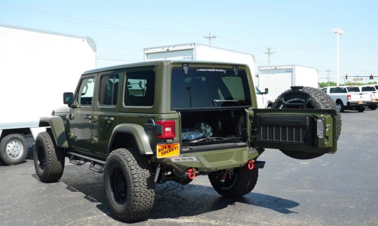 — 3.5-Inch Rocky Ridge Suspension System – 17-Inch Black Rhino Arsenal Alloy Wheels – 37-Inch BFGoodrich All-Terrain T/A Tires – Rocky Ridge Caliper Covers – Hypertech System Calibration – Color-Matched JLX Series Steel Front Bumper – Red D-Rings – LED Off-Road Light – Color-Matched Fab Fours Steel Rear Bumper – Predator Pro Side Steps – Black Ceramic Exhaust Tip – Nylon Grab Handles – All Weather Floor Liners/Trunk Liner – Rocky Ridge Windshield Banner – FMVSS Compliant – Factory Warranty – AND MORE!