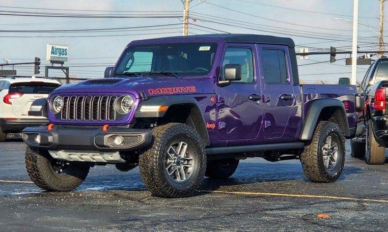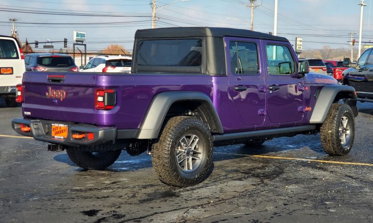 Mojave off-road performance and premium interior comfort come together in this special-edition Reign-colored Gladiator equipped with Fox performance suspension and Rubicon-grade hardware.