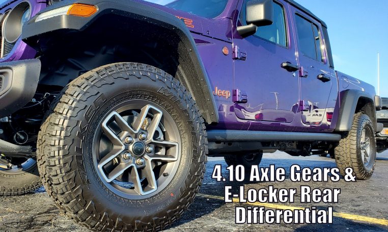 - Performance & Capability: 4X4 • 4.10 Axle Gears • E-Locker Rear Differential • Fox Performance Bypass Shocks • Rubicon Highline Fenders • Rock Rail Sill Protectors • Gorilla Glass Windshield • Performance Hood