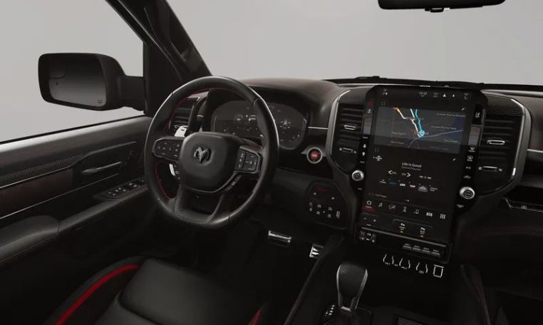 - RHO Level 1 Equipment Group: Full Length Premium Upgraded Floor Console; SiriusXM Radio Service; USB Host Flip; Surround View Camera System; Rain Sensitive Windshield Wipers; Integrated Center Stack Radio; LED CHMSL Lamp; Power Adjustable Pedals with Memory; Front Passenger Interactive Display; Integrated Voice Command with Bluetooth; Connectivity - US/Canada; Traffic Sign Recognition; GPS Navigation; 4G LTE Wi-Fi Hot Spot; Hands-Free Active Driving Assist System; Front Passenger Power Seat Back Massage; Head Up Display; Connected Travel and Traffic Services; Evasive Steer Assist; Heated Second Row Seats; Drowsy Driver Detection; Driver Power Seat Back Massage; Intersection Collision Assist System; Disassociated Touchscreen Display; Leather/carbon Flat-Bottom Steering Wheel; HD Radio; Smartphone as a Key Capable; 14.4" Touchscreen Display; Driver/passenger Wrapped Assist Handles; Dual Wireless Charging Pad; Uconnect 5 Nav with 14.4" Display; Ventilated Rear Seats; Rear 60/40 Folding Split Recline Seat; 240 Amp Alternator; Ventilated Front Seats; Harman/kardon 19 Speaker Premium Sound; Premium Wrapped Instrument Panel Bezel; Exterior Mirrors with Memory; Luxury Front Door Trim Panel; Real Carbon Fiber Interior Accents; Driver Seat Memory; Power Tailgate; Radio/driver Seat/mirrors/pedals Memory; Digital Rearview Mirror; 12-Way/1-way Trailer Connector