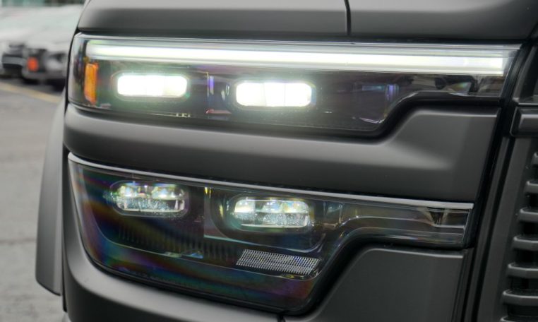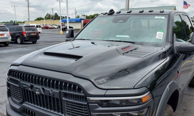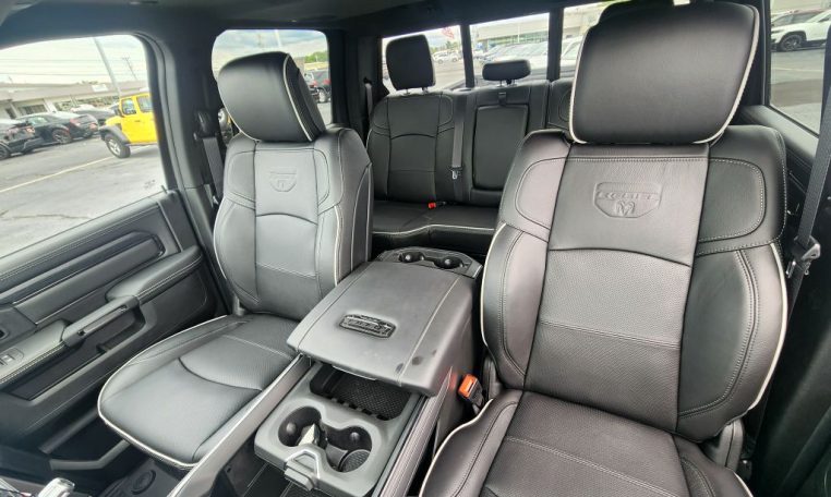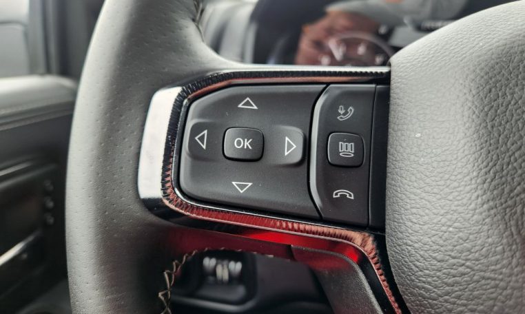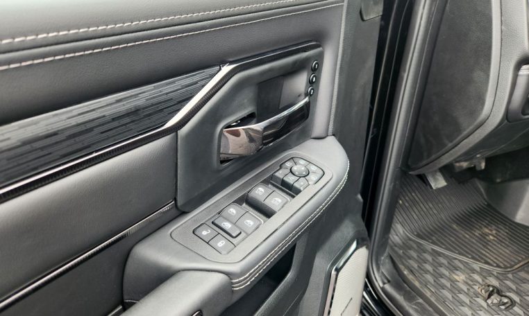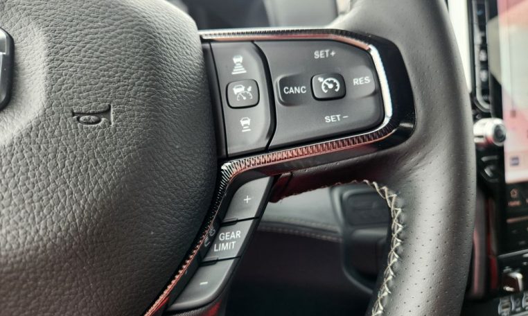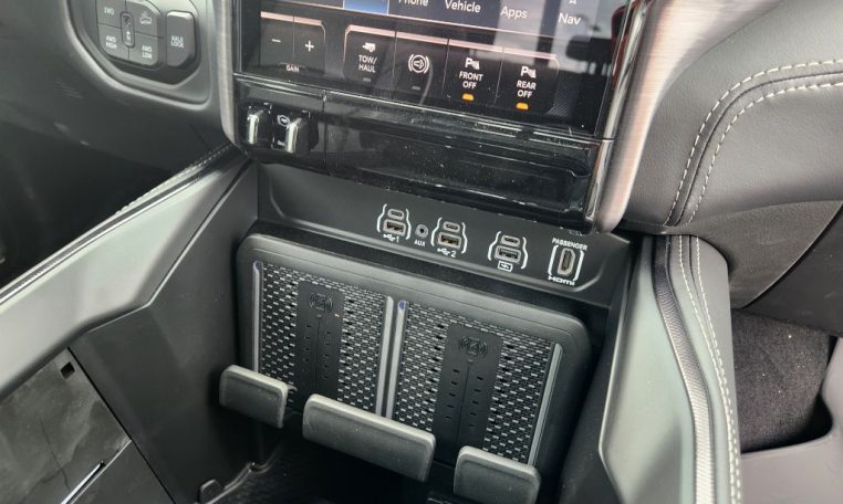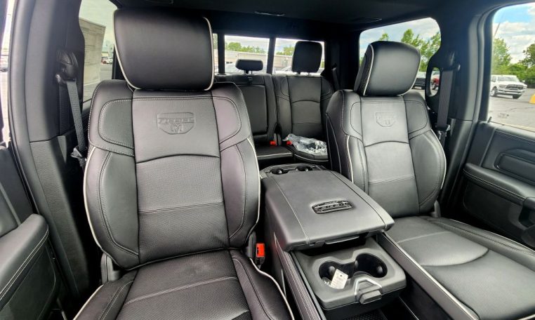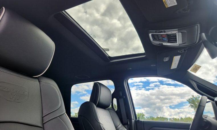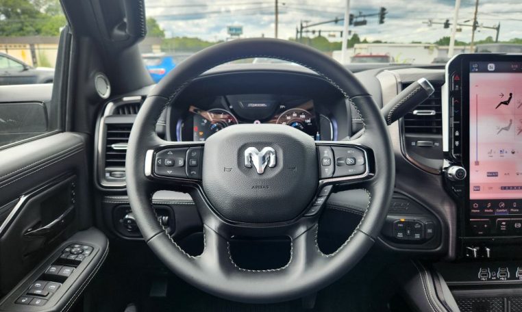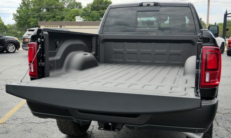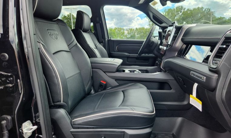 - Call 800-643-2112; Front Passenger Interactive Display; Integrated Voice Command with Bluetooth; Emergency Vehicle Alert System (EVAS); Power Deployable Running Boards; Auto Power-Folding Mirrors; Mirror Running Lights; MOPAR Deployable Bed Step; Alexa Built-In; Apple CarPlay; Power-Adjustable Convex Aux Mirrors; Premium Overhead Console; Forward and Reverse Utility Lights; Disassociated Touchscreen Display; Leather Wrapped Shift Control; 17 Speaker Harman/kardon Premium Sound; LED Interior Lighting; LED Dome Lamp with On/off Switch; Universal Garage Door Opener; Sun Visors with Illuminated Vanity Mirrors; Leather Trimmed Bucket Seats (NL); Center Stop Lamp with Cargo View Camera; Rain Sensitive Windshield Wipers; LED Bed Lighting; Connectivity - US/Canada; Body Color Door Handles; GPS Navigation; 4G LTE Wi-Fi Hot Spot; GPS Antenna Input; Overhead LED Lamps; Exterior Mirrors with Heating Element; Auto Dim Exterior Mirror; SiriusXM with 360L; Global Telematics Box Module; Leather Wrapped Grab Handle; Connected Travel and Traffic Services; Black Exterior Mirrors; Off-Road Info Pages; Selectable Tire Fill Alert; Trailer Tow Pages; HD Radio; 14.4" Touchscreen Display; Power Heated Fold Telescopic Mirrors with Memory; Exterior Mirrors with Supplemental Signals; Sport Performance Hood; Exterior Mirrors Courtesy Lamps; Uconnect 5 Nav with 14.4" Display; MOPAR Spray in Bedliner; Front Door Locks 2-Door Passive Entry; Auto High Beam Headlamp Control; Exterior Mirrors with Memory; Luxury Door Trim Panel; Aluminum Litho Instrument Panel Bezels with Black Trim; Power Adjust Mirrors; Power Telescoping Mirrors; MOPAR Front and Rear Rubber Floor Mats; Auto Dim Exterior Passenger Mirror; Auto Adjust in Reverse Exterior Mirrors