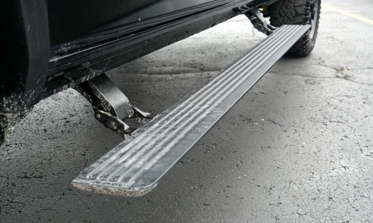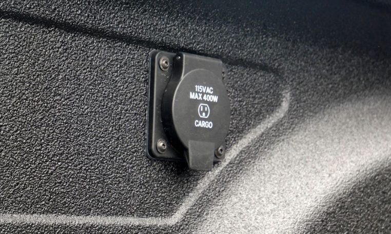 - Exterior & Utility: Power Running Boards • Factory Spray-In Bed Liner • LED Bed Lighting • Bed-Mounted 115V AC Power Outlet • Deployable Bed Step • Black Wheel Flares • Powder-Coated Bumpers • Sport Performance Hood • Rear Power-Sliding Window • Power / Heated Trailer Tow Mirrors