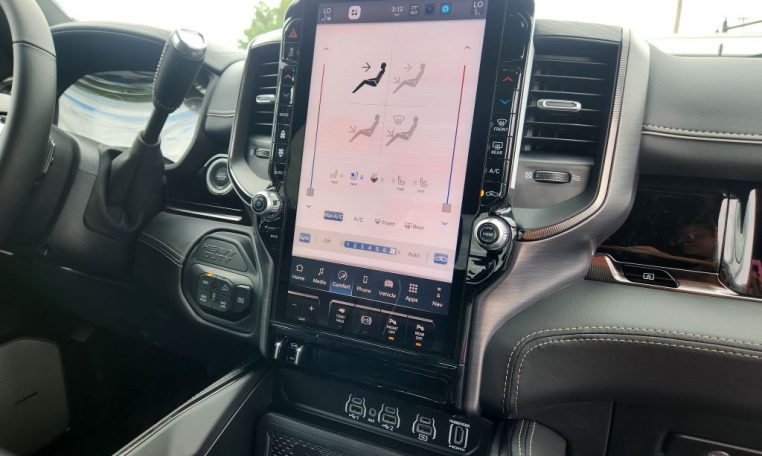 - Technology & Audio: 14.4-Inch Touchscreen Radio Display • Front Passenger Touchscreen Display • Premium Harman/Kardon 17-Speaker Stereo System • Android Auto • Apple CarPlay • Bluetooth for Phone • Satellite Radio • Dual Wireless Charging Pads • 4G LTE Wi-Fi Hotspot