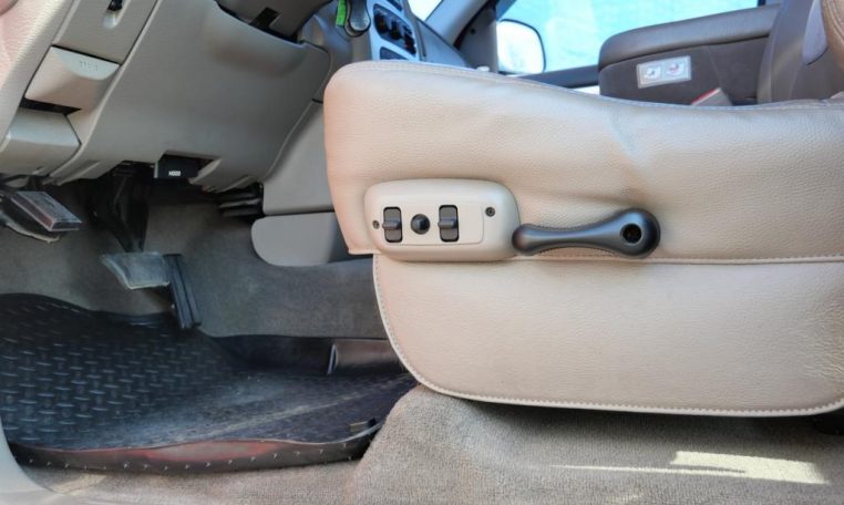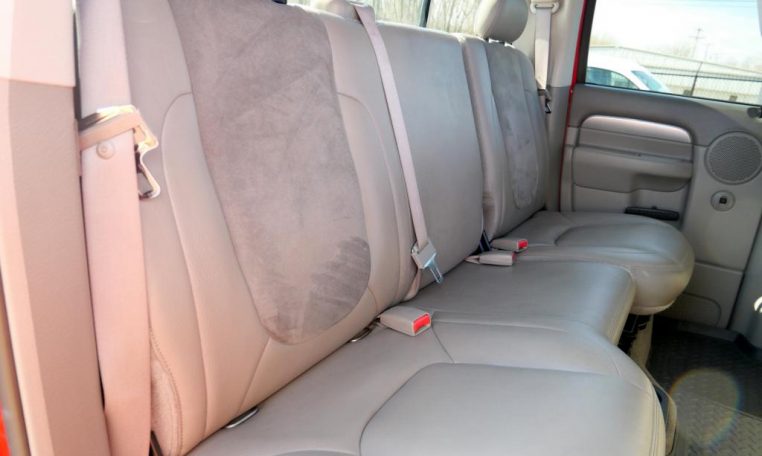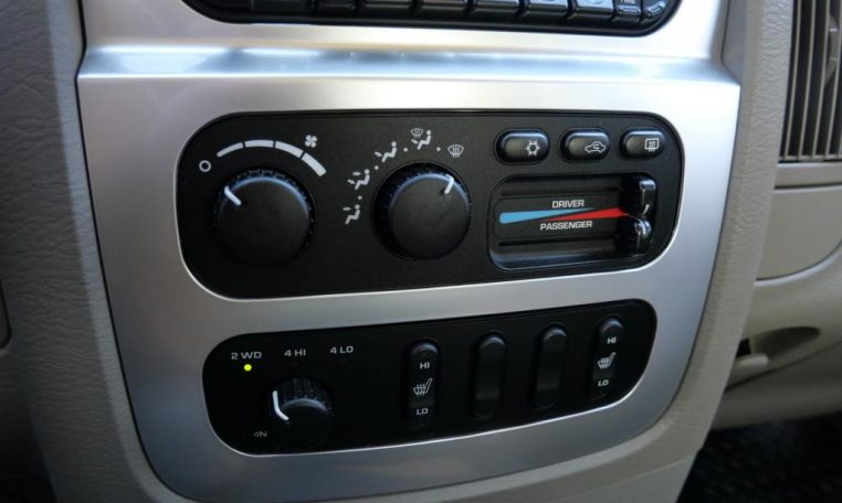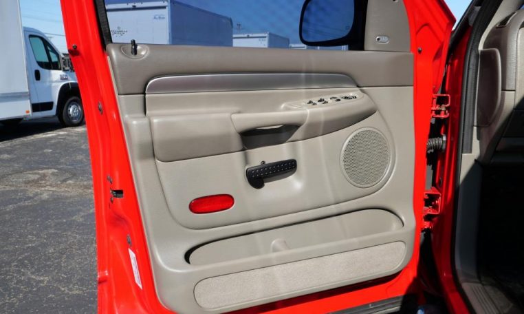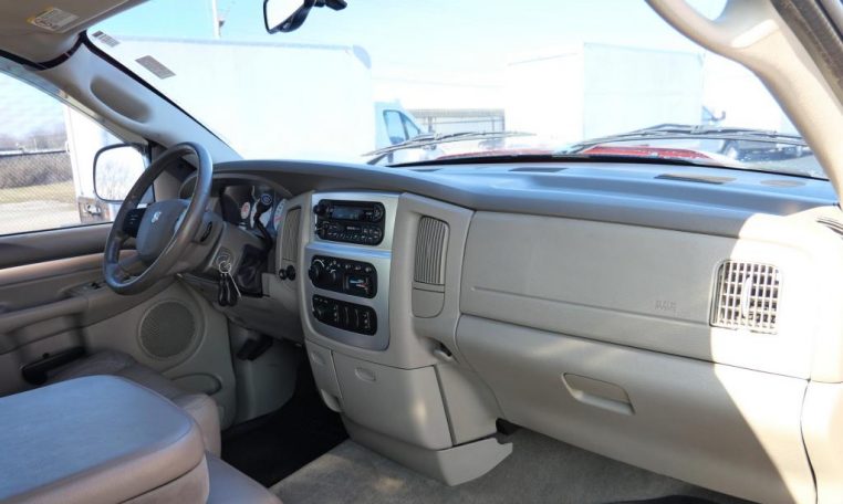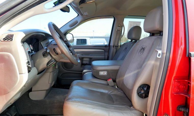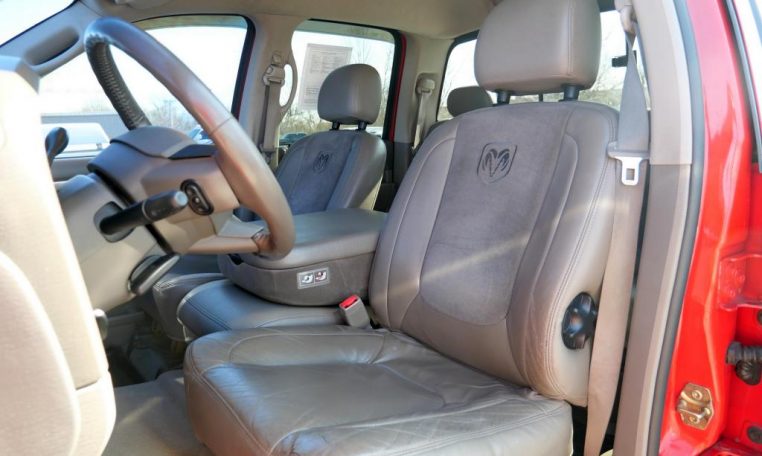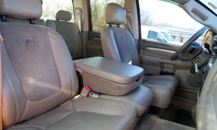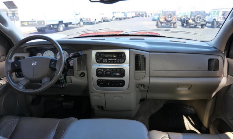 - LARAMIE QUICK-ORDER PKG: dual zone temp control; steering wheel mounted radio controls; satin silver instrument panel; 4-wheel anti-lock brakes; overhead console w/trip computer/universal garage door opener; fog lamps; bright grille; light group; chrome bodyside moldings; pwr adjustable pedals; AM/FM stereo w/6-disc in-dash CD changer; (7) Infinity speakers; leather 40/20/40 split bench seat; 6-way pwr driver/passenger seat; rear 60/40 split folding seat; security group; leather-wrapped steering wheel; center seat cushion storage; P265/70R17 all-season BSW tires; sliding rear window; elect shift-on-the-fly transfer case