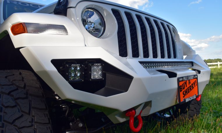 - Bumper-Mounted 30″ LED Light Bar & LED Cube Lights