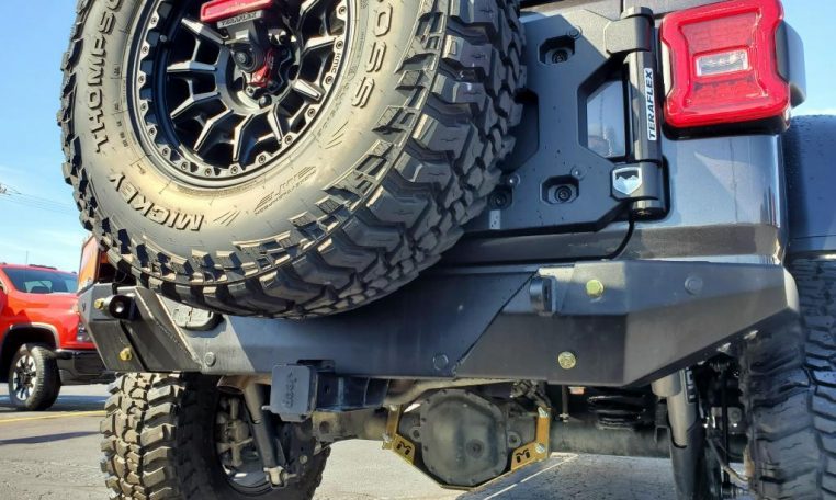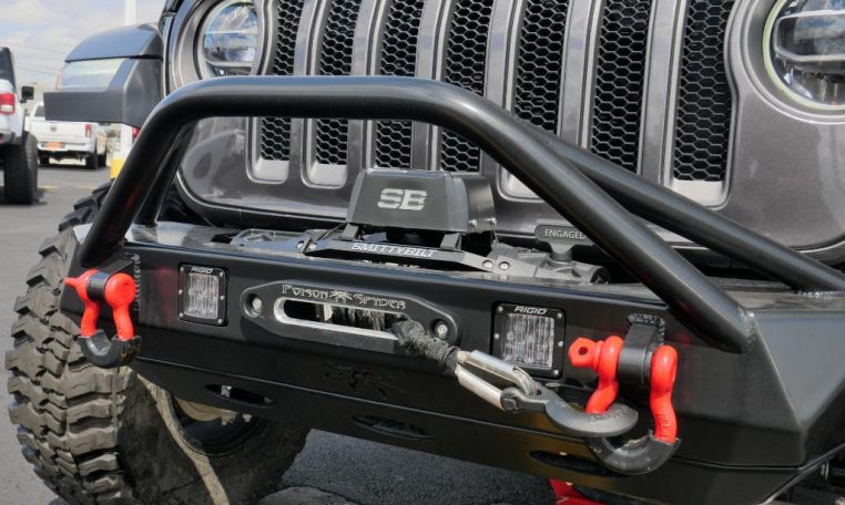 — Teraflex Alpine Suspension Lift System – Adjustable Flacon Series 3 Shocks – 20-Inch Satin Black KMC KM547 Carnage Alloy Wheels – 35-Inch Mickey Thompson Baja Boss Tires – Poison Off Road Front Bumper w/ Stinger – Off Road Rear Bumper – Teraflex Spare Tire Carrier – Smittybilt XRC Rope Winch – Rigid LED Light Cubes – Rock Rail Sill Protectors – Front/Rear Differential Skid Plates – Louvered Hood Vent Inserts – AND MORE!