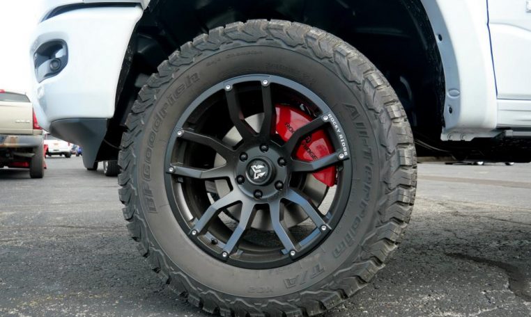 — 6-Inch Suspension Lift – Performance Nitrogen-Charged Shocks – 35-Inch BFGoodrich All-Terrain T/A KO2 Tires – 20-Inch Semi-Gloss Black Aluminum Wheels – AMP Research Power Running Boards – Painted Fender Flares – Puddle Lamps – Flowmaster Exhaust System – Red Brake Caliper Covers – Windshield Banner – AND MORE!