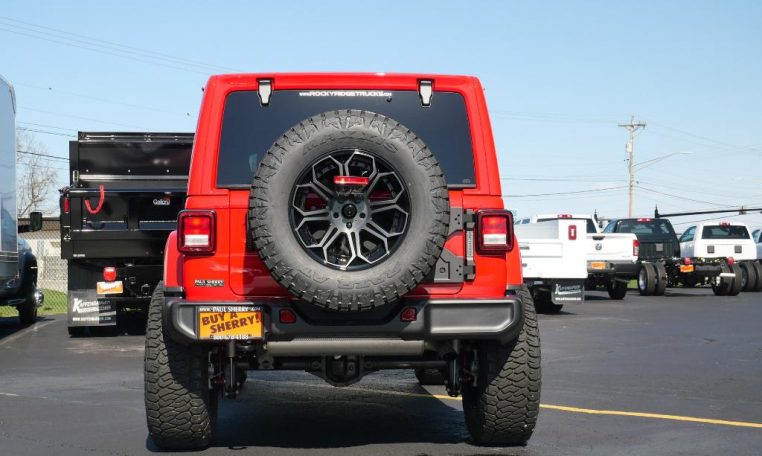 — 3-Inch Rocky Ridge Suspension System – Fox Adventure Series Shocks – 20-Inch 4PLAY 4P70 Black Alloy Wheels – 37-Inch Maxxis RAZR AT Tires – Accent Painted Suspension Components – Power Running Boards – Dual Steering Stabilizers – Speedometer Calibration – Rocky Ridge Stubby Bumper w/ Painted Center Insert – 20-Inch LED Off-Road Light – Color-Matched D-Rings – Oversized Tire Carrier w/ Relocation Kit – Upgraded Spare Tire Mount – Rocky Ridge Windshield Banner – FMVSS Compliant – Factory Warranty – AND MORE!