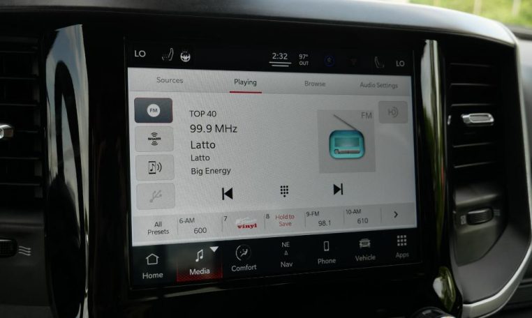 - BIG HORN LEVEL B EQUIPMENT GROUP: Google Android Auto; SiriusXM Radio Service; Bluetooth Handsfree Phone & Audio; USB Host Flip; Rear Window Defroster; Integrated Center Stack Radio; ParkSense Front/Rear Park Assist w/Stop; Rear View Auto Dim Mirror; Power Adjustable Pedals; For More Info; Call 800-643-2112; Rear Power Sliding Window; Rear Dome w/On/Off Switch Lamp; Connectivity - US/Canada; Glove Box Lamp; 4G LTE Wi-Fi Hot Spot; 115V Auxiliary Rear Power Outlet; Media Hub w/2 Charge Only USBs; Power 8-Way Driver Seat; Auto Dim Exterior Driver Mirror; Heated Front Seats; Radio: Uconnect 5 W w/8.4" Display; Heated Steering Wheel; 8.4" Touchscreen Display; Foam Bottle Insert (Door Trim Panel); Class IV Receiver Hitch; Security Alarm; Apple CarPlay; Big Horn IP Badge; Black Premium Power Mirrors (GUL); Remote Start System; SiriusXM Satellite Radio; Exterior Mirrors w/Supplemental Signals; Exterior Mirrors Courtesy Lamps; Air Conditioning ATC w/Dual Zone Control; 115V Auxiliary Power Outlet; 400W Inverter;