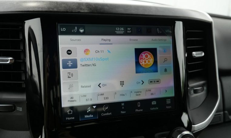 • BIG HORN LEVEL B EQUIPMENT GROUP: Google Android Auto; SiriusXM Radio Service; Bluetooth Handsfree Phone & Audio; USB Host Flip; Rear Window Defroster; Integrated Center Stack Radio; ParkSense Front/Rear Park Assist w/Stop; Rear View Auto Dim Mirror; Power Adjustable Pedals; For More Info; Call 800-643-2112; Rear Power Sliding Window; Rear Dome w/On/Off Switch Lamp; Connectivity - US/Canada; Glove Box Lamp; 4G LTE Wi-Fi Hot Spot; 115V Auxiliary Rear Power Outlet; Media Hub w/2 Charge Only USBs; Power 8-Way Driver Seat; Auto Dim Exterior Driver Mirror; Heated Front Seats; Radio: Uconnect 5 W w/8.4" Display; Heated Steering Wheel; 8.4" Touchscreen Display; Foam Bottle Insert (Door Trim Panel); Class IV Receiver Hitch; Security Alarm; Apple CarPlay; Big Horn IP Badge; Black Premium Power Mirrors (GUL); Remote Start System; SiriusXM Satellite Radio; Exterior Mirrors w/Supplemental Signals; Exterior Mirrors Courtesy Lamps; Air Conditioning ATC w/Dual Zone Control; 115V Auxiliary Power Outlet; 400W Inverter;