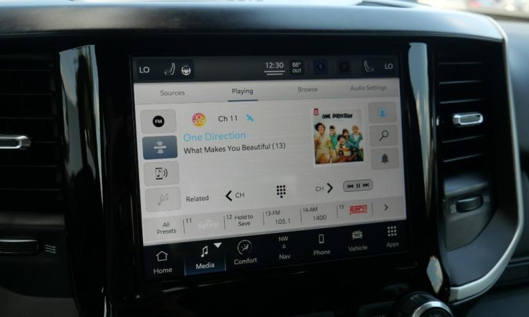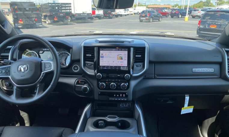 - BIG HORN LEVEL B EQUIPMENT GROUP: Google Android Auto; SiriusXM Radio Service; Bluetooth Handsfree Phone & Audio; USB Host Flip; Rear Window Defroster; Integrated Center Stack Radio; ParkSense Front/Rear Park Assist w/Stop; Rear View Auto Dim Mirror; Power Adjustable Pedals; For More Info; Call 800-643-2112; Rear Power Sliding Window; Rear Dome w/On/Off Switch Lamp; Connectivity - US/Canada; Glove Box Lamp; 4G LTE Wi-Fi Hot Spot; 115V Auxiliary Rear Power Outlet; Media Hub w/2 Charge Only USBs; Power 8-Way Driver Seat; Auto Dim Exterior Driver Mirror; Heated Front Seats; Radio: Uconnect 5 W w/8.4" Display; Heated Steering Wheel; 8.4" Touchscreen Display; Foam Bottle Insert (Door Trim Panel); Class IV Receiver Hitch; Security Alarm; Apple CarPlay; Big Horn IP Badge; Black Premium Power Mirrors (GUL); Remote Start System; SiriusXM Satellite Radio; Exterior Mirrors w/Supplemental Signals; Exterior Mirrors Courtesy Lamps; Air Conditioning ATC w/Dual Zone Control; 115V Auxiliary Power Outlet; 400W Inverter;