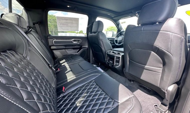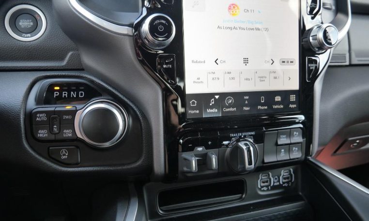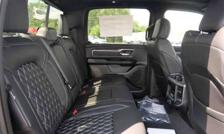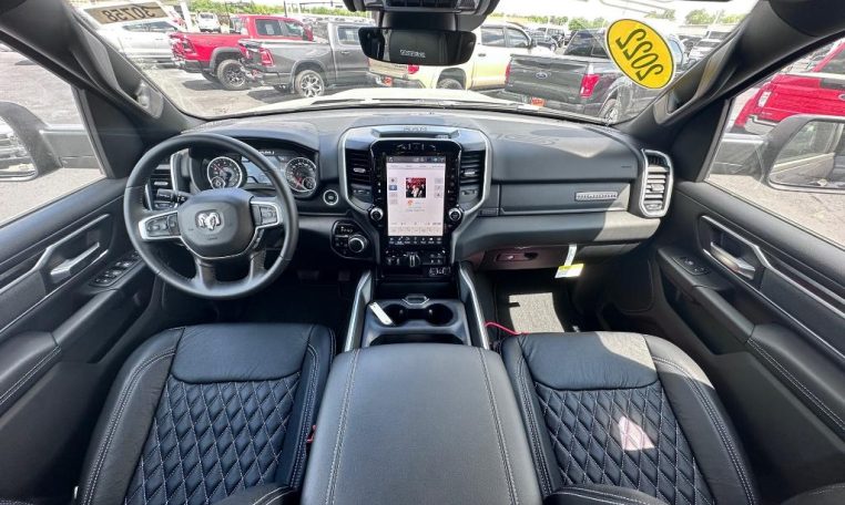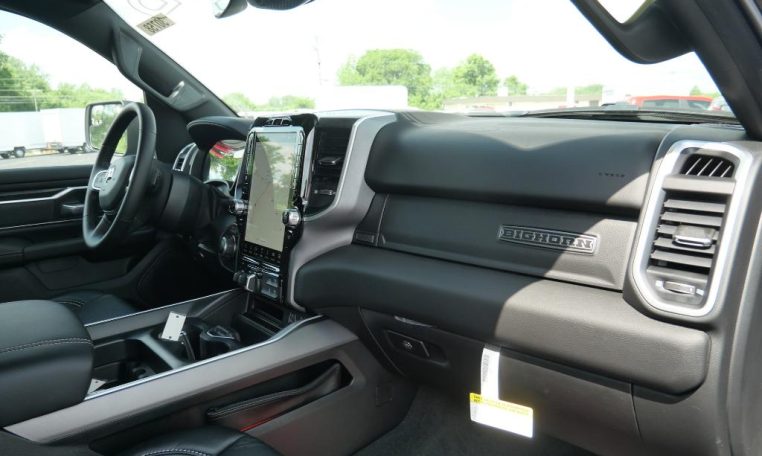 - BIG HORN LEVEL 2 EQUIPMENT GROUP: Google Android Auto; SiriusXM Radio Service; Bluetooth Handsfree Phone & Audio; USB Host Flip; Rear Window Defroster; For Details; Visit DriveUconnect.com; Integrated Center Stack Radio; ParkSense Front/Rear Park Assist w/Stop; Rear View Auto Dim Mirror; Power Adjustable Pedals; Rear Power Sliding Window; Rear Dome w/On/Off Switch Lamp; Connectivity - US/Canada; Glove Box Lamp; 4G LTE Wi-Fi Hot Spot; 115V Auxiliary Rear Power Outlet; Media Hub w/2 Charge Only USBs; Exterior Mirrors w/Heating Element; Power 8-Way Driver Seat; Auto Dim Exterior Driver Mirror; Heated Front Seats; Radio: Uconnect 5 W w/8.4" Display; Heated Steering Wheel; 8.4" Touchscreen Display; Class IV Receiver Hitch; Security Alarm; Black Premium Power Mirrors; Apple CarPlay; Big Horn IP Badge; Remote Start System; SiriusXM Satellite Radio; Exterior Mirrors w/Supplemental Signals; Exterior Mirrors Courtesy Lamps; Air Conditioning ATC w/Dual Zone Control; 115V Auxiliary Power Outlet; 400W Inverter;