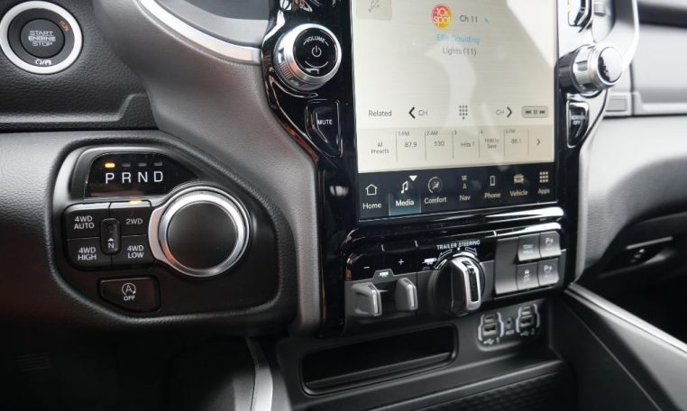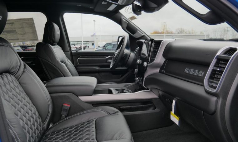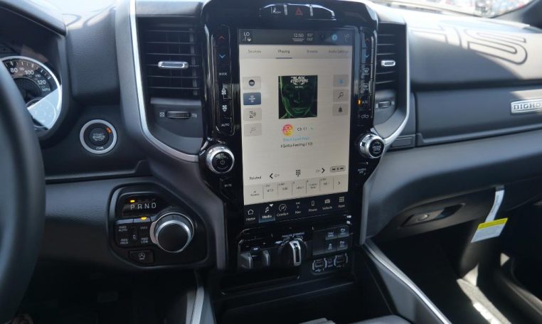 - BIG HORN LEVEL 2 EQUIPMENT GROUP: Google Android Auto; SiriusXM Radio Service; Bluetooth Handsfree Phone & Audio; USB Host Flip; Rear Window Defroster; For Details; Visit DriveUconnect.com; Integrated Center Stack Radio; ParkSense Front/Rear Park Assist w/Stop; Rear View Auto Dim Mirror; Power Adjustable Pedals; Rear Power Sliding Window; Rear Dome w/On/Off Switch Lamp; Connectivity - US/Canada; Glove Box Lamp; 4G LTE Wi-Fi Hot Spot; 115V Auxiliary Rear Power Outlet; Media Hub w/2 Charge Only USBs; Exterior Mirrors w/Heating Element; Power 8-Way Driver Seat; Auto Dim Exterior Driver Mirror; Heated Front Seats; Radio: Uconnect 5 W w/8.4" Display; Heated Steering Wheel; 8.4" Touchscreen Display; Class IV Receiver Hitch; Security Alarm; Black Premium Power Mirrors; Apple CarPlay; Big Horn IP Badge; Remote Start System; SiriusXM Satellite Radio; Exterior Mirrors w/Supplemental Signals; Exterior Mirrors Courtesy Lamps; Air Conditioning ATC w/Dual Zone Control; 115V Auxiliary Power Outlet; 400W Inverter;