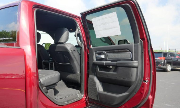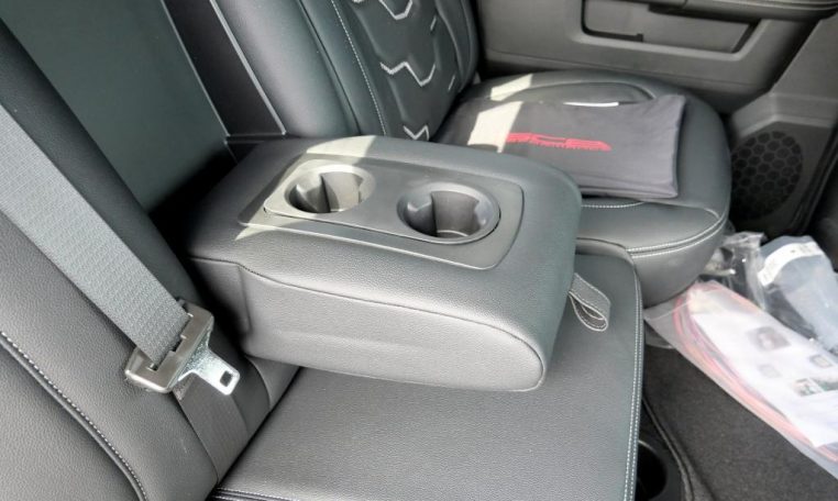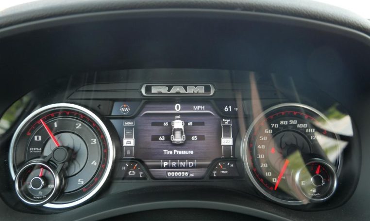 - LEVEL C EQUIPMENT GROUP: Rear Window Defroster; Rear View Auto Dim Mirror; LED Tail Lamps; Power Adjustable Pedals; Leather Wrapped Steering Wheel; Rear Power Sliding Window; Rear Dome w/On/Off Switch Lamp; Front Fog Lamps; Glove Box Lamp; Footwell Courtesy Lamp; 115V Auxiliary Rear Power Outlet; Media Hub w/2 Charge Only USBs; Heated Front Seats; Heated Steering Wheel; Foam Bottle Insert (Door Trim Panel); Wheels: 18" x 8.0" Polished Aluminum; Dampened Tailgate; Security Alarm; Big Horn IP Badge; Locking Lower Glove Box; Remote Start System; Steering Wheel Mounted Audio Controls; Dual Glove Boxes; Air Conditioning ATC w/Dual Zone Control; Universal Garage Door Opener; 115V Auxiliary Front Power Outlet; Exterior 115V AC Outlet; 400W Inverter; Cluster 7.0" TFT Color Display; 2nd Row In Floor Storage Bins; Sun Visors w/Illuminated Vanity Mirrors; ParkSense Front/Rear Park Assist System