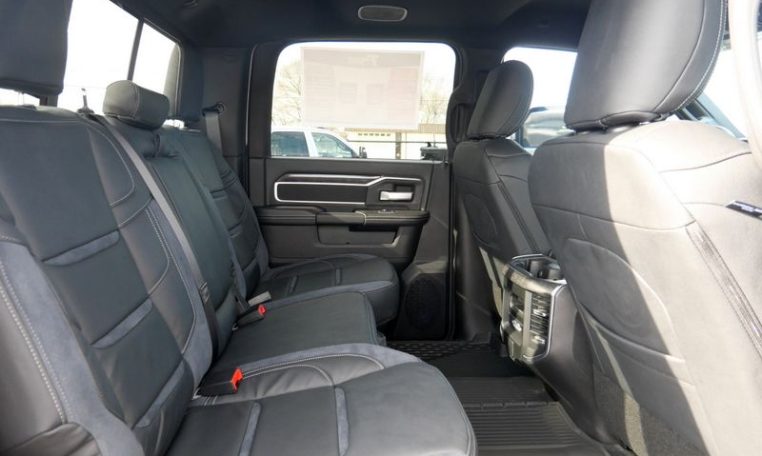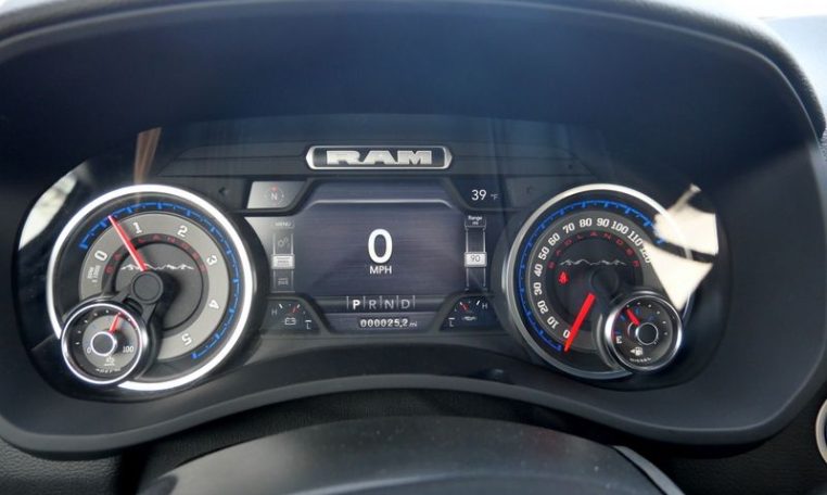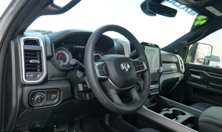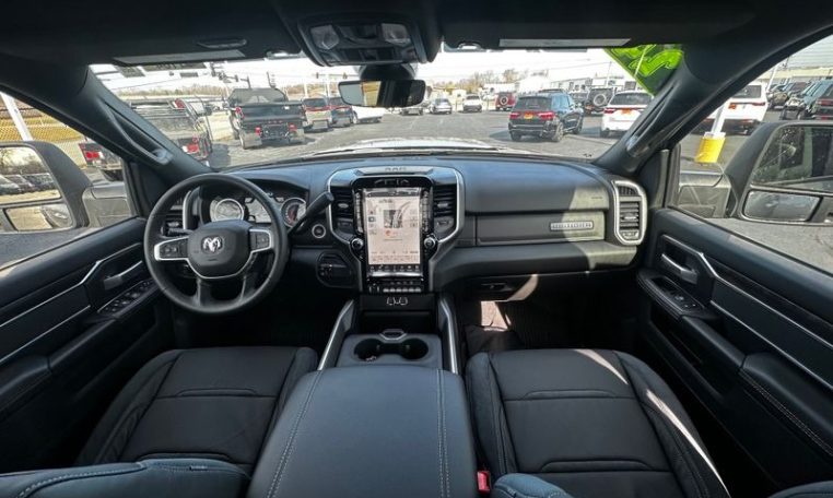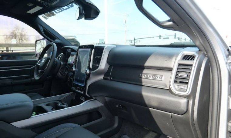 - Level 2 Equipment Group: Rear Window Defroster; Blind Spot and Cross Path Detection; Power Adjustable Pedals; Leather Wrapped Steering Wheel; Rear Power Sliding Window; Rear Dome with On/off Switch Lamp; Front Fog Lamps; Glove Box Lamp; Auto Power-Folding Mirrors; Footwell Courtesy Lamp; Media Hub with 2 Charge Only USBs; Exterior Mirrors with Heating Element; Heated Front Seats; Mirror Running Lights; Heated Steering Wheel; Foam Bottle Insert (door Trim Panel); Black Exterior Mirrors; Dampened Tailgate; Security Alarm; Big Horn Instrument Panel Badge; Power Adjustable Convex Aux Mirrors; Forward and Reverse Utility Lights; Locking Lower Glove Box; Remote Start System; Uconnect 5 Navigation with 12.0" Display Radio; Power Heated Fold Telescope Mirrors; Exterior Mirrors with Supplemental Signals; Steering Wheel Mounted Audio Controls; Exterior Mirrors Courtesy Lamps; Dual Glove Boxes; 115-Volt Auxiliary Front Power Outlet; Cluster 7.0" TFT Color Display; Universal Garage Door Opener; Center Hub; Power Adjust Mirrors; 2nd Row in Floor Storage Bins; Power Telescoping Mirrors; Sun Visors with Illuminated Vanity Mirrors; ParkSense Front/rear Park Assist System