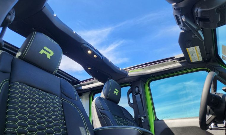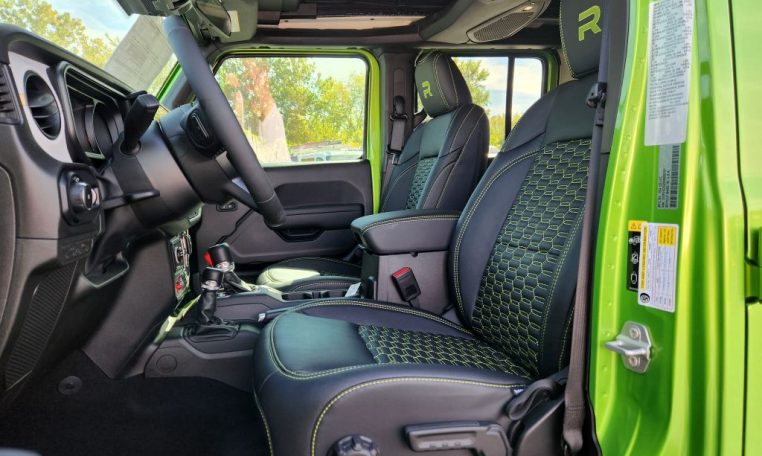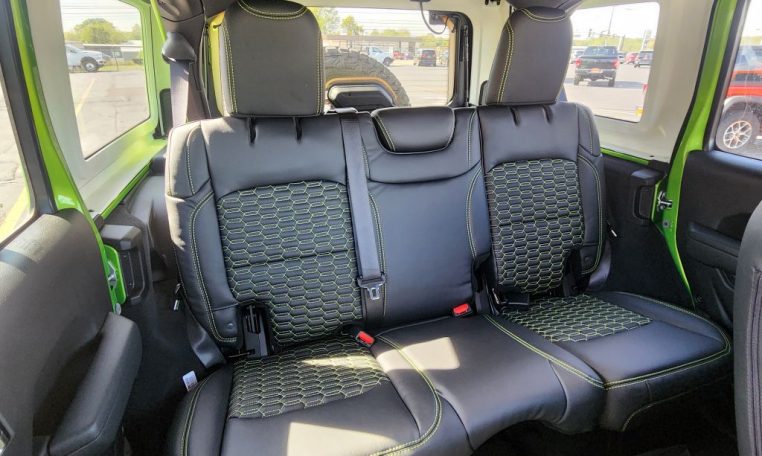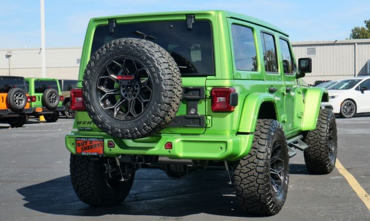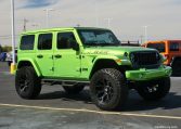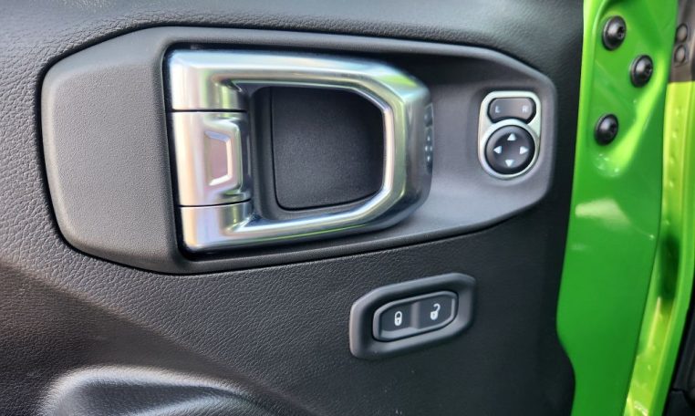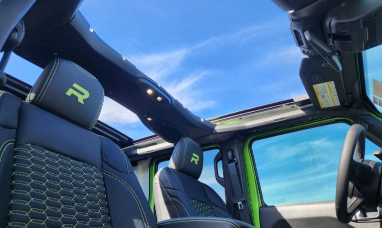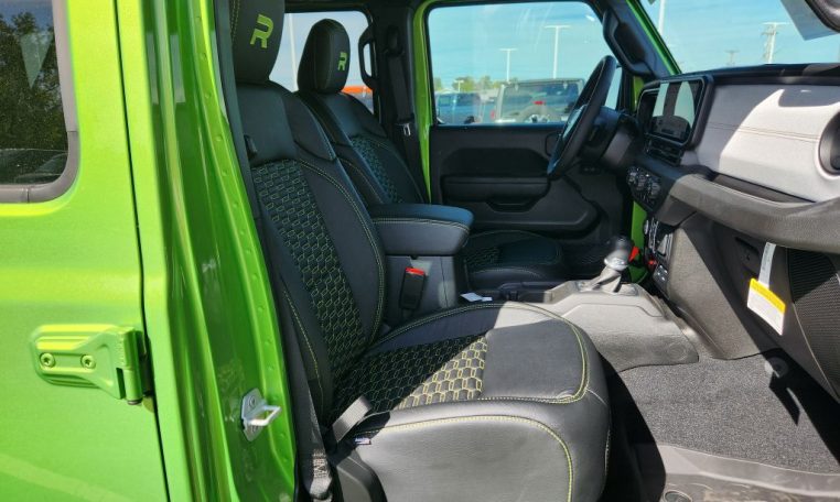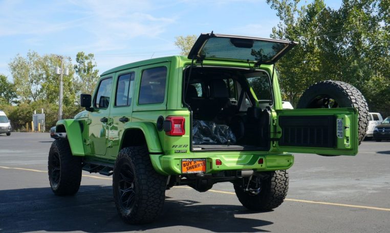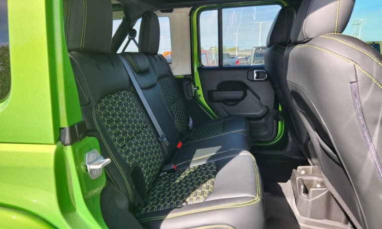 - Open-Air & Exterior: Sky One-Touch POWER TOP • Mojito Green Paint • Black Grille • Rubicon Highline Front Fender Flares • Rock Rail Sill Protectors • Mopar Hinge-Gate Reinforcement • Removable Rear Quarter Windows • Gorilla Glass Windshield