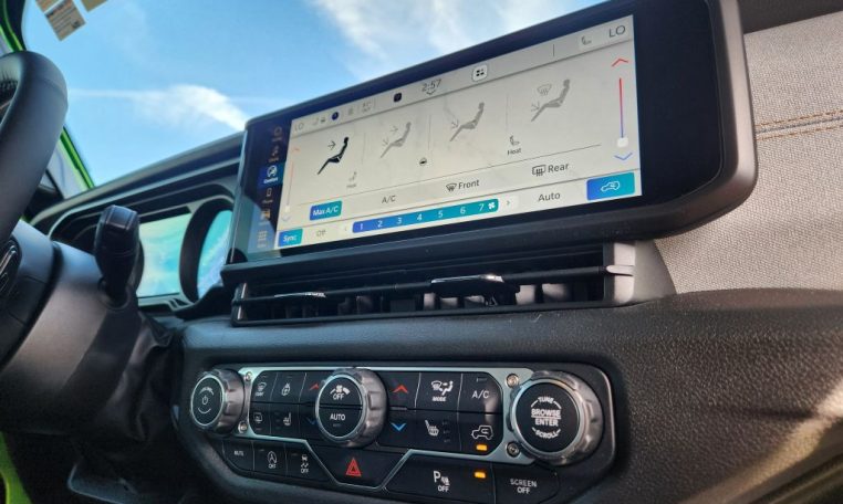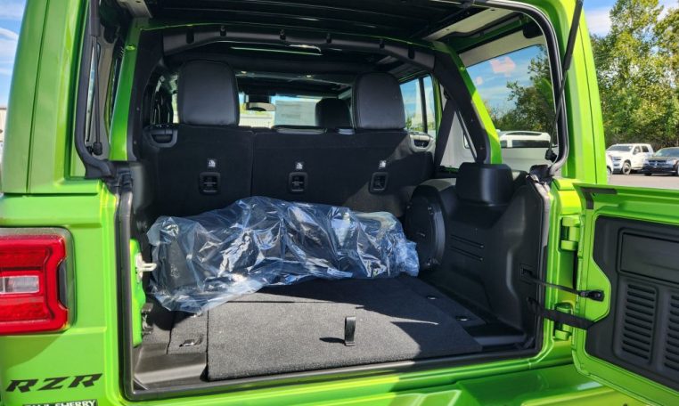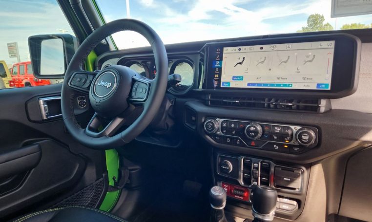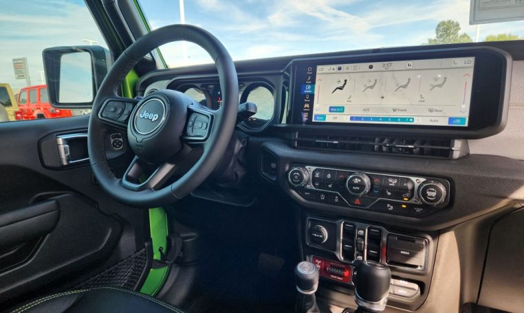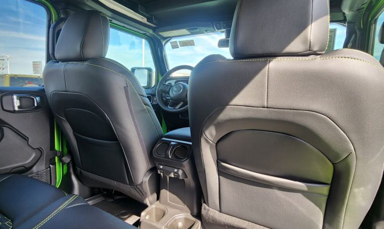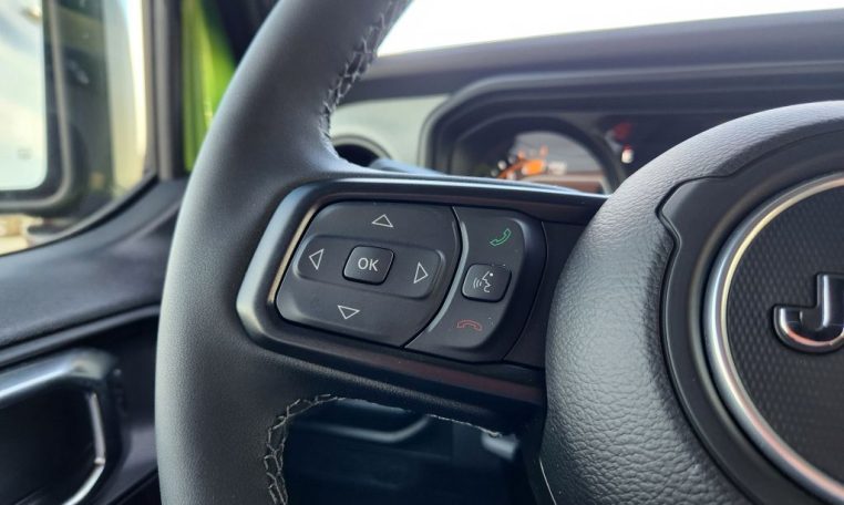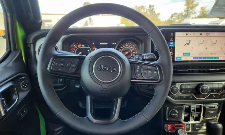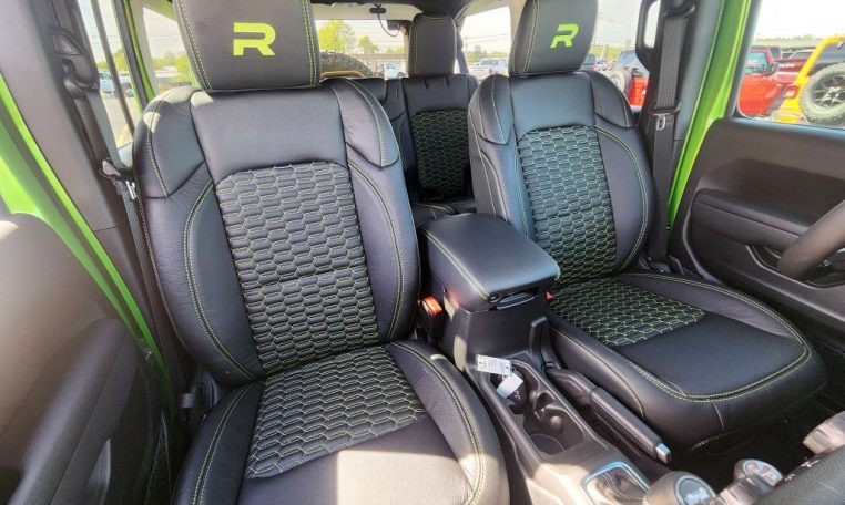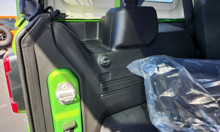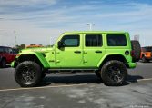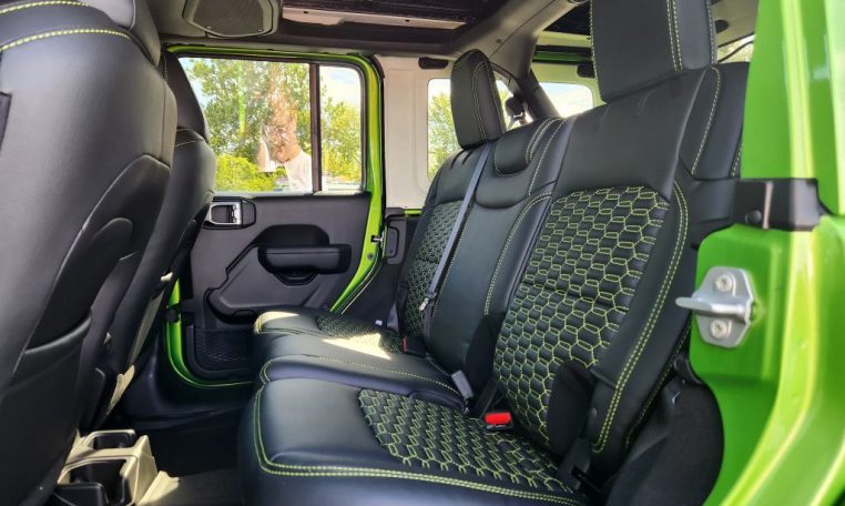 - Open-Air & Exterior: Sky One-Touch POWER TOP • Mojito Green Paint • Black Grille • Rubicon Highline Front Fender Flares • Rock Rail Sill Protectors • Mopar Hinge-Gate Reinforcement • Removable Rear Quarter Windows • Gorilla Glass Windshield